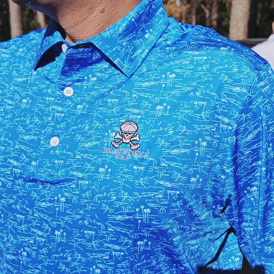 Clean, cool, and unmistakably Dead Sticks. The Performance Elite Polo in Powda Blue is a men's golf polo built for performance and designed to stand out. Breathable fabric, original styling, and a fit made for the course. From Dead Sticks Golf — veteran and minority-owned.